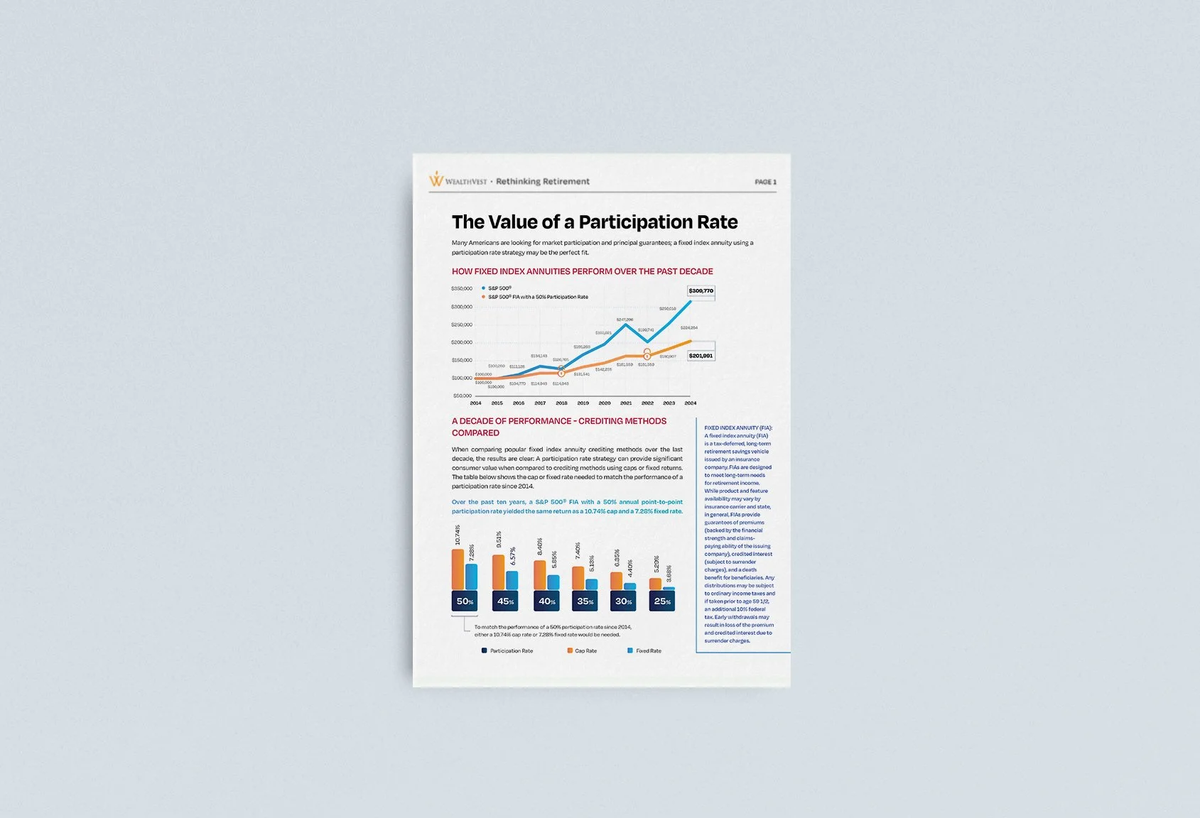 Are your clients looking to capture bull market gains while never having to take a loss in principal? This consumer-facing sales tool demonstrates various participation rates featured in FIAs